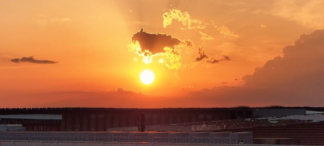 17:42日没で、夕陽の写真を撮りたかったので大屋根リングの上へ。