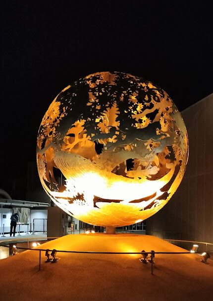 その後、「いのちめぐる冒険」の横の地球儀、夜のライトアップが綺麗だとインスタで見たので、そこへ。